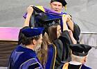 Dumna mama z tej strony. Uroczyste rozdanie dyplomów czy raczej nakładanie chomonta (tak wygląda pasowanie na magistra) stało się faktem. Półtora godzinna uroczystość. Córka była w ostatniej grupie maszerującej przez scenę, były trzy wydziały. Ale to dobrze nawet, bo czas był oczekiwaniem na najważniejsze, a nie oczekiwaniem końca. Mała była zachwycona, zachowywała się wspaniale. Teraz ma cel - marsz przez scenę. W sumie studia ukończyło ponad 3800 studentów. Rano była uroczystość na otwartym stadionie dla wszystkim (na to nie chodzimy), a potem podział na wydziały i przemarsz przez scenę. Łezka w oku się zakręciła. Taki przegląd uroczystości.