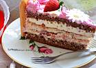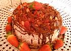 Czekoladowy biszkopt ,z czekoladowym kremem,masą poziomkową i galaretką