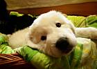 Tak na szybko "mała puchata kulka". Butny ma 5 miesięcy, jest wielkości owczurka niemieckiego i w końcu przestał gryźć :). I jak widać, czasami zdarza mu się mnie przechytrzyć - wykorzystał moją migrene i wlazl na łóżko