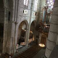 Tym razem na francuskich wakacjach weszliśmy w niedostępne wcześniej zakamarki, dobrze już nam znanej Katedry w Beziers. Schodami ciasnymi i krętymi dostaliśmy się na balkony w środku, jak i na samym dachu. Tam balkon wąski rozciągał się wokoło budynku, więc widoki super na miasto i kanał du midi....