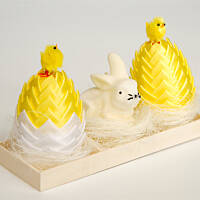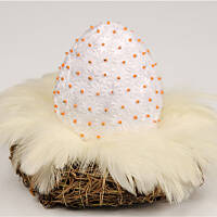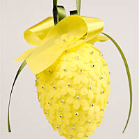 Bardzo lubię własnoręczne dekoracje. W galerii moich wielkanocnych ozdób z różnych lat znajdziecie głównie rzeczy, które sama wykonałam, choć wkradło się też cekinowe złote jajko, na którym wyrosły kwiaty i usiadły motyle, które wykonała mama mojej znajomej - nie mogłam się oprzeć i dołączam je do galerii, ponieważ wyszło na zdjęciu bardzo wdzięcznie :) No i ten drewniany zając wielkanocny, którego kupiłam na rynku, przy okazji szukania innych drobiazgów.