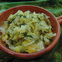 Środek kapusty, małe listki ugotowałam na słodko-kwaśno z moim ... wrześniowym koperkiem.
