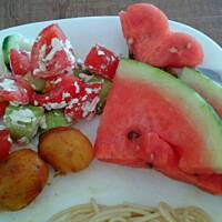 Moje dziewczyny sięgały też po zwykłe płatki czy kulki, a nawet pizzę, ale najwięcej jadły owoców, bo bez przerwy były słodkie pomarańcze, morele, brzoskwinie, arbuzy, jabłka, grejfruty czy czereśnie. Żałowałam, że figi były jeszcze zielone, ale może kiedyś....takie prosto z drzewa....
