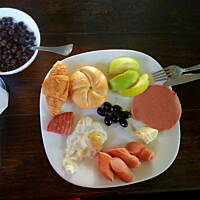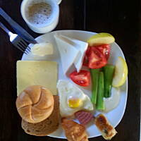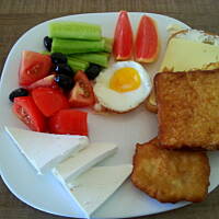 Na śniadania musiałam zjeść bułgarski biały ser sirene i świeże warzywa lub sałatkę szopską, do tego jajko i tost, albo pyszne rogaliki z ciasta a'la francuskiego z dżemem różanym lub morelowym i jogurtem, troszkę przypominającym nasze kwaśne mleko, ale takie "od krowy" ;).