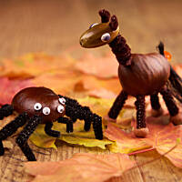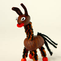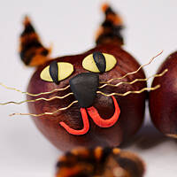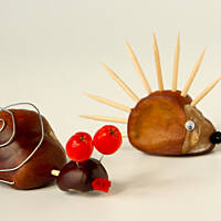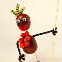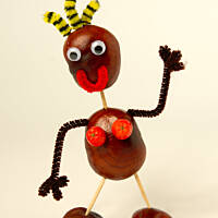 Od ładnych już paru lat, co roku, pod koniec września jadę z koszykiem na kasztanowe zbiory. Powstają wówczas z kul brązowych, błyszczących różne dziwaczne stwory. Uwielbiam siadać przy stole zasypanym wyciorkami, wykałaczkami, obłożonym plasteliną w różnych kolorach, i jarzębinowymi koralami. Czasem sięgam po korki od wina, innym razem po orzechy. Jesień jest piękna, gdy można czarować z dzieciakami różne zwariowane dziwadełka :)