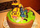 (2012-04-29 22:11)marcepan jest świetny, w trakcie ugniatania nie zrobił sie rzadki, więc cukru zabrał trochę mniej, miałam problem z utrzymaniem pewnych szczegółów ozdób w pozycji pionowej, może sa jakieś na to sposoby, ale niestety jeszcze ich nie znam;) w sumie tort udany, choć do końca zadowolona nie jestem, musiałam użyc kilku wykałaczek by w miarę sie trzymało, szczególnie daszek koparki:)
