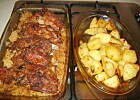 (2009-01-10 15:25)2 godz pieczenia to lekka przesada ,może to zalezy od piekarnika .Wkładam wszystko surowe piekę na 180 stopni góra dół i termoobieg nastawiam na godz czasami dodaję 10 minut ,zalezy jakie duże kawałki mięsa są ,ziemniaki za godz napewno się upieką. -