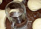 Po drugie, konsystencja ciasta jest luźna i jest to właściwa konsystencja. Po wyrośnięciu, ciasto wyłóż partiami na lekko oprószoną mąką powierzchnię. Rozgniatamy, np. dłońmi (nie gnieciemy, jak prania), tylko równamy na grubość 4 cm a następnie szklanką wycinamy. Jeśli bawisz się w wałkowanie, ciasto oprósz mąką, połóż na to folię spożywczą i dopiero wałkuj. Wycięte pączki odkładamy na oprószoną tackę. Dłonie smarujemy olejem, lub oprószamy mąką przy rozgniataniu ciasta. To powinno ułatwić przygotowanie pączków i skutecznie zapobiega wtłaczaniu niepotrzebnej mąki. Luźne ciasto = puszyste, lekkie pączusie, gęste ciasto (lub ugniecione) = zbite, ciężkie, pełne pączek (toną w oleju w pierwszych 2-3 sekundach).