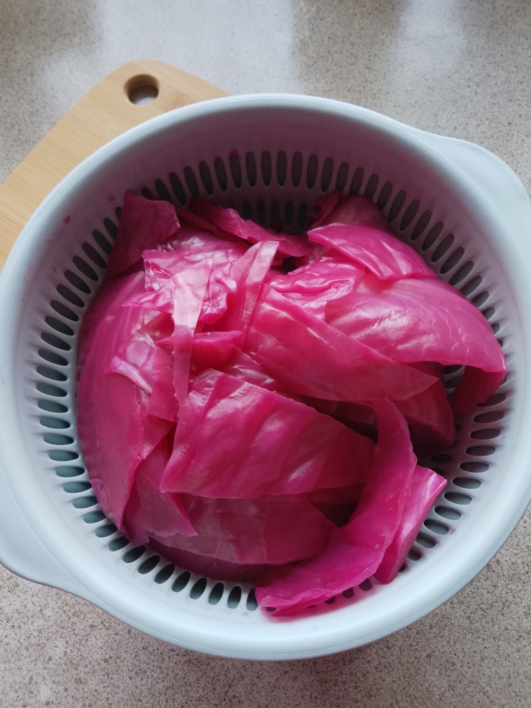 (2025-11-19 08:19)Już mam w słoju /szyjka wąska więc pocięłam drobniej- na 8ki i na pół by je upchnąć/ + plasterki moich buraczków, zalewa mieszana: ukiszona i woda przegotowana. Kolorek piękny