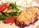 Schabowe, posmarowane majonezem, oblozone przesmazonymi pieczarkami ,na to plaster ananasa i ser. Naprawdę dobre.