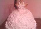 Megii013 - rozmiar XL A tak poważnie, to od Ciebie zależy jak dużej użyjesz lalki. Barbie jest np. wysoka i żeby zachować proporcje musisz piec biszkopt w misce i tortownicy. Cały tort waży ok 3 do 4 kg . Ta ważyła 4 bo masa cukrowa jest cięższa od bitej śmietanki.