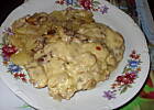 PS. Moje modyfikacje: ziemniaki pokroiłam w plastry, wrzuciłam na wrzątek i obgotowałam, pieczarki pokroiłam w półplastry i udusiłam na maśle (mam za słaby piekarnik), a ponieważ łopatkę miałam całą i to zamrożoną, użyłam piersi z indyka Ale mimo iż robiłam już kilka różnych zapiekanek nigdy nie zapiekałam ich z takim sosem. Miła odmiana! Pozdrawiam