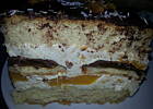 a oto ostatni kawałek z małymi modyfikacjami:) z czystego lenistwa posłużyłam sie biszkoptami które pięknie zmiękły na drugi dzień:) i z połowy brzoskwiń zrobiłam mus z galaretką :) pysze i lekkie ciasto:) idealne orzeźwienie :) pozdrawiam
