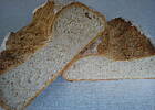 Chlebek bardzo dobry, po raz pierwszy piekłam chleb na zakwasie. Zamiast żytniej maki dałam więcej pszennej i jogurt typu greckiego. Chlebek smakował domownikom