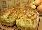 Mój wypiek. Jeden z mąki pszennej, drugi mieszany z dodatkiem ziarna. Jeszcze ciepłe, więc foto całości. Chlebek bardzo nam przypadł do smaku.