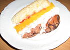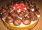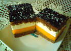 Bardzo pyszne, moja mama stwierdziła, że to jedno z najlepszych ciast, jakie jadła;-) Zrobiłam na ciemnym biszkopcie, dodałam jeszcze rodzynek do masy kremówkowej i posypałam na górze lukier skórką pomarańczową;-)