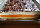 Pokombinowałam po swojemu, bo wydawało mi się że 3 budynie to za dużo i zrobiłam z 2. Do tego dosypałam tylko 1 galaretkę i bez żadnego tłuszczu. Masa wyszła przepyszna, może na początku była troszkę zbyt rzadka ale w lodówce szybciutko zgęstniała. Na masę nałożyłam mandarynki z puszki i na to kremówka (ale bez śnieżki). A na koniec, moje tradycyjne wykończenie większości ciast - "zasmażka" jak się ze mnie już śmieją - tzn. rozpuszczona czekolada gorzka z odrobiną mleka i masła. Wyszło przepyszne, delikatne i orzeźwiające ciasto.