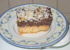 Ciasto w wersji oryginalnej jakos mi nie specjalnie smakuje. Calosc uratowala polewa czekoladowa z dodatkiem olejku migdalowego. Nastepnym razem aromatu dodam do masy i bedzie super.
