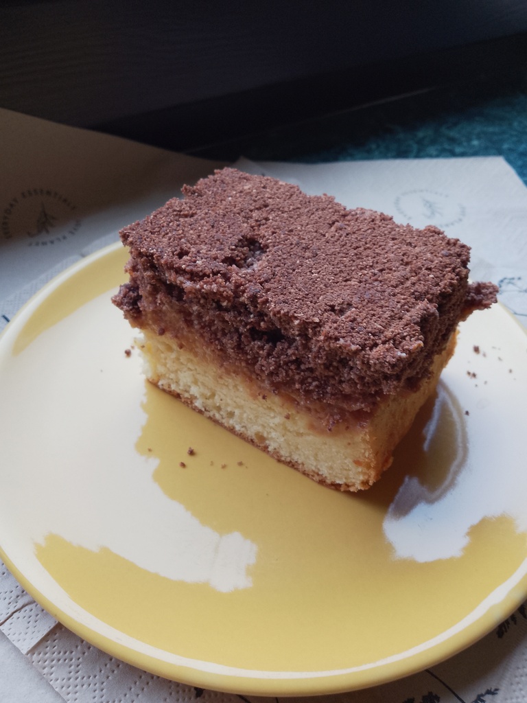 Nie mogłam się powstrzymać i wzięłam się z rana za to ciasto. Z kruszonką trochę improwizowałam,bo nie miałam mąki orzechowej. Dlatego wzięłam laskowe i zmieniłam, dodałam trochę mąki owsianej i 2 łyżki śmietany.Nie wygląda jak klasyczna kruszonka,ale smakowo pycha.Zjadlam jeszcze gorące. Pyszny odwracaniec :)