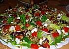 Gościom sałatka baaardzo smakowała. Poszedł cały wielki półmisek. Pomidory miałam zwykłe, pokrojone w kostkę, ale też było ładnie. Całość posypałam jeszcze zmielonymi ziarnami ostropestu.