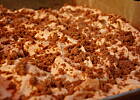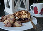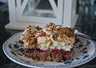 Pyszne i efektowne ciacho (u mnie z wisienkami z kompotu + marcepan). Zamiast kruszonki, posypane płatkami migdałowymi i czekoladą (pod koniec pieczenia). Dobrze, że upiekłam dużą blaszkę, to może sąsiedzi też spróbują tych pyszności. Dziękuję pięknie za super przepis :))). Pozdrawiam.