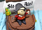 Figurki świetnie się lepiło, statek jest owinięty masą marcepanową. Żagle i fale są z masy cukrowej.