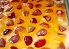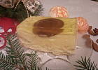 Masa wzbogacona o drobno pokrojony owoc gruszki, delicję na górze i zalana warstwą galaretki ugotowanej z dodatkiem soku gruszkowego.