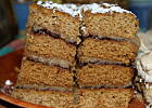 Ta masa orzechowa jest znakomita.Przełożyłam nią mój piernik,na zdjęciu widać,że świeżo ukrojone,bo nie zdążyła jeszcze zastygnąć.Mleka dodałam więcej o 2 łyżki,starczyło,by masę potraktować także jako polewę.