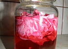 Ocet zrobiłam już kilka dni temu i wyszedł super, ładny kolorek i intensywny piękny zapach mimo, iż nie miałam za wiele płatków róż. Polecam, fajny pomysł!!