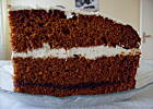 Mój pierniczek wyrósł bardzo wysoki, więc podzieliłam go na 3 części. Pierwszą wysmarowałam dżemem a drugą masą. Jest bardzo pyszny a oto i on: Moje ciasto piekło się troszkę dłużej, bo aż 70 minut. Gorąco polecam wszystkim niezdecydowanym