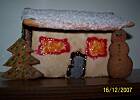 A oto chatka z zeszłego roku - jak widać jest różnica :) Tak więc dziewczyny nie bójcie się próbować, bo ćwiczenie czyni mistrza! :p Tylko najbardziej w tym wszytskim denerwuje mnie to, że mam dośc duża wilgoć w domu i moje pierniczki nie twardnieją... One tylko po upieczeniu były twarde, a teraz normalnie można je zjeść. Na szczęście chatka jakoś się trzyma, choć boję się, żeby się nie rozpłynęła, bo karmel nie jest zbyt twardy :P
