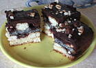 Do I warstwy dałam do kokosa prażone płatki migdałowe, bo nie miałam duzo kokosa, do wisni dołozyła troche orzechów włoskich (wisnie były niestety kupne - konfitura z Łowicza, ale sprawiły się nieźle). Zresztą uważam, że to ciasto bez wisni duuuużo by straciło. Zdecydowanie lepsze na następny dzień. Biszkopty niemieckie - takie twardsze niz nasze, ale w cieście zmiękły.
