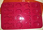 Dostałam wreszcie foremkę silikonową w realu. Był tylko jeden kształt i może niezbyt ciekawy. Kosztowała ok. 30zł. Po zrobieniu pralinek widzę wyrażną różnicę. Sylikonowa jest o niebo lepsza. Pralinki bardzo łatwo wychodzą i się nie łamią.