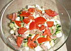 sałatka rewelacja!!! po prostu pycha, nieco zmieniłam przepis: sałata pekinska, sos, cebula, ogórek, tuńczyk, jajka - starłam na tarce o grubych oczkach, na to dałam ser żółty starty na grubych oczkach, pomidory pokroiłam w drobniutką kosteczke( usunęłam środki wtedy nie są wodniste) i zalałam resztką sosu, na koniec dodałam pokrojoną zieloną cebulke