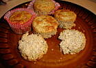 Bułeczki zrobiłam z podwójnej porcji i tak jak pisze autorka wyszło mi ich 8. Robi się je bardzo szybko, są smaczne , na pewno zdrowe ale miałam problem z ich wyjęciem z papilotek. Odczekałam tak jak napisano aż wystygną ale problem pozostał. Nie wiem może to jest wina papilotek ? Może są wykonane z niedobrego papieru ? A może papilotki wysmarować masłem przed włożeniem ciasta ?