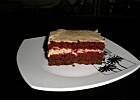 Upiekłam to ciasto na urodziny męża .Piekłam w sredniej prostokątnej blasze,masę zrobiłam jedną- śmietana plus karmel.Ciasto bardzo smaczne,choć mój kolor nie jest taki intensywny ,ale to wina barwnika nie dostałam czerwieni koszenilowej.Polecam