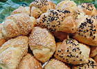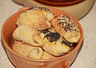 No i namówiłaś mnie Megii,rogaliki zrobione.Wprawdzie troszkę kombinowane,ale i tak wyszły pyszniutkie i kruchutkie.Miałam tylko 1/3 kostki margaryny i 1/4 masła,więc dodałam jeszcze oleju.Drożdże suszone-1 paczuszka,nadzienie wytrawne-mozarella i feta.Ciasto idealnie plastyczne i faktycznie nie ma potrzeby podsypywania mąką.Na pewno nie raz będę je jeszcze robiła.