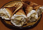 . Nie można ich przyrumienić bo się kruszą i muszą być cieniutkie, a zamiast rożków robiłam "kapturki" - kółeczko przerywałam do połowy i zakładałam i sklejałam karmelem(woda z cukrem, z przepisu)-łatwiej, i więcej owoców wchodzi, a wyglądają uroczo. Ostatecznie-z 3 porcji, hit przyjęcia, zniknęły błyskawicznie. Wielkie dzięki, za tydzień podbijam serca kolejnych gości!!