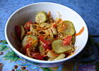 Zapomniałam o odciśnięciu wody z ogórków.Mimo tego sałatka wyszła pyszna i dobrze się przechowuje.