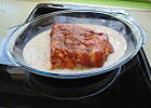 Właśnie wyłączyłam i otwarłam piekarnik. Przykryłam naczynie ręcznikiem kuchennym i tak będzie stygł. Mam nadzieję, że to nie będzie miało żadnego wpływu na smak i w ogóle. Przykryłam w obawie o muchy, które uwielbiają siadać i "robić" na mięsko, a że jest noc nie będę miała nad nimi kontroli. C.D.N
