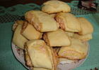 Ciasteczka wyszły bardzo smakowite ... ciasto jest takie krucho - drożdżowe, rozpływa się w ustach a raczej rozsypuje ... Bardzo dobrze komponuje się z ciastem nadzienie kokosowe.