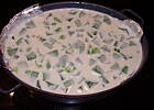 Od dawna miałam ochote zrobić ten zapomniany przeze mnie deser ale upały i rodzinka w drodze znacznie przyspieszyły decyzję...:))) Poniewaz przez najblizsze dni będzie nas dużo, to deser zrobiłąm z podwójnej porcji i na spodzie biszkoptowym. Największą tortownicę miałam zajętą więc wpadłam na pomysł żeby zrobić w brytfannie do pieczenia mięsa wyłożonej wcześniej folią. Poszczególne etapy wyglądały tak: Kolejno wlewałam masę mleczną , na sama górę przycięłam biszkopt, na biszkopt deskę, odwróciłam do góry dnem i do lodówki. Po zdjęciu brtfanny niestety pięknie deser pękł... Jednak dno jest trochę węższe niż góra i na stól się nie nadaje ale walorów smakowych przez to nie stracił i dyskretnie w kuchni mozna go pokroić. Na talerzyku wygląda zachęcająco : a z bliska jeszcze lepiej ...:))) Do masy śmietanowej z wielką ostroznością (bo nie lubię "perfumowanych"ciast dodałam parę kropli aromatu migdałowego i masa śmietanowa przypomina w smaku tę białą warstwę kolorowej galaretki kupowanej na wagę, którą pamiętam jeszcze z czasów dzieciństwa...:))) Może należałoby popracować nad techniką wykonania tego deseru w owalnej brytfannie i byłby ciekawy pomysł na duże wielkanocne jajo, odpowiednio udekorowane. Mogłaby to być np. pascha...:))) Aga serdecznie dziękuję za ten przepis i polecam z największą przyjemnością mimo moich przygód z nim.Pozdrawiam...:)))