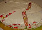Do masy śmietanowej z wielką ostroznością (bo nie lubię "perfumowanych"ciast dodałam parę kropli aromatu migdałowego i masa śmietanowa przypomina w smaku tę białą warstwę kolorowej galaretki kupowanej na wagę, którą pamiętam jeszcze z czasów dzieciństwa...:)))