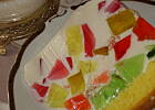 Zachęcona fotoreportażem alidab dzisiaj zrobiłam śmietanowego galaretkowca. Bardzo smaczny i leciutki - akurat na letnie upały zastanawiałam się czy w formie tortu miskowego czy też na normalnej blaszce. lenistwo wybrało blaszkę. Schody zaczęły się na początku. Okazało się, że nie mam żelatyny - wobec tego zastosowałam żółtą galaretkę. Jako, że jedna była za mało, a dwie za dużo na podane proporcje zwiększyłam ilość mleka - aby uzyskać litr płynów. I uwaga - żelatyna rozpuszczana w gorącym mleku serowacieje - aby się pozbyć tego należy wszystko rozmiksować na wysokich obrotach w jakimś naczyniu miksującym (u mnie termomix). Dalej już poszło dobrze. Dałam 4 kolorowe galaretki (trzy wystarczą jednak w zupełności) do środka. I na duzej blaszce w mojej wersji wychodzi ponad 3-cm wysokości galaretkowiec. Na przyszły raz na spód dam jeszcze biszkopty. Nie dawałam wcale dodatkowego cukru - wystarczył ten z galaretek