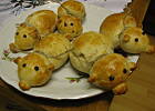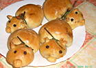 Dziś, zrobiłam chłopcom świnki, do środka włożyłam poprostu dobrą kiełbaskę i żółty ser (drobno pokrojone). Wyszły naprawdę smaczne. Wcześniej robiłam podobne, z tym, że moje główki miały doklejane. Lepszym sposobem, jest oddzianie główki z całości, tak jak w tym przepisie.