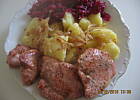 Tak Agapis - ta akurat szynka jest kupiona gotowa peklowana, w dziale mięsnym w markecie - podobnie jak zgrzewane są inne szynki, ogonówki, wędzinki np. krotoszyńskie itp..... może nie zwróciłaś uwagi. W tym przepisie jest sposób przygotowania jej na bardzo szybki obiad (u mnie często niedzielny, żeby nie stać przy garach ) - tylko pieprz i na patelnię. To jest naprawdę dobre, kruche i soczyste - ale nie smażyć dłużej ! Wierz mi - wstydziłabym się jakąś "podeszwę " tu wstawić....