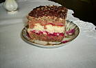 tort orzechowy zrobiony z dwóch placków orzechowych i jeden biszkopt