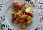 Potrawa przepyszna. Jedyne co zmieniłam to temperatura pieczenia aby zaoszczędzić na czasie. Wszystko piekłam w brytfannie pod folią aluminiową w 220 stopniach przez ok. 30-40 min. Polecam i pozdrawiam :)