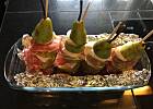 Smosiu - jak surowe to ładnie stoi. Topiący się ser i mięknące gruszki - zaburzają konstrukcję. Zrobiony przeze mnie tunel sprawdził się. Danie wyszło przepyszne. Dla mnie samej ciut za słodkie (dojrzałe gruszki) - ale to drobiazg do opanowania - ostrzejszy ser, zamiast mozzarelli, więcej pleśniaka z pleśnią, ostra salami - wszystko do dopracowania. Myślę jeszcze o zrobieniu relishu z żurawiny i jalapenio, bez dodatku cukru i smarowaniu tym plastrów gruszki- bo surowa żurawina, dana na czubek rewelacyjnie komponowała się z całością. Tylko śmierdziała malizną - a wpakowanie jej do środka, pomiędzy warstwy zaburzy konstrukcję (tak myślę). Będzie do częstych powtórek.