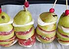 Można wbić dwa patyczki lub włożyć do wyższego naczynia żeby opierały się o ścianki. Czasem gruszki są nieforemne :) dlatego jak je pokroję to zaczynam układać od największego plasterka - czyli ten środkowy daję na sam dół - do najmniejszego wtedy piramidka jest zachowana